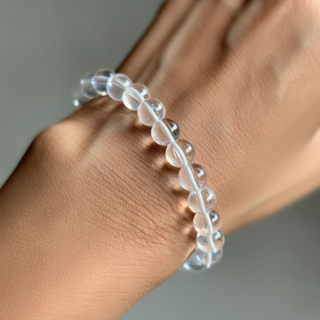 Its clear, elegant look makes it versatile for everyday wear, meditation, or spiritual routines.